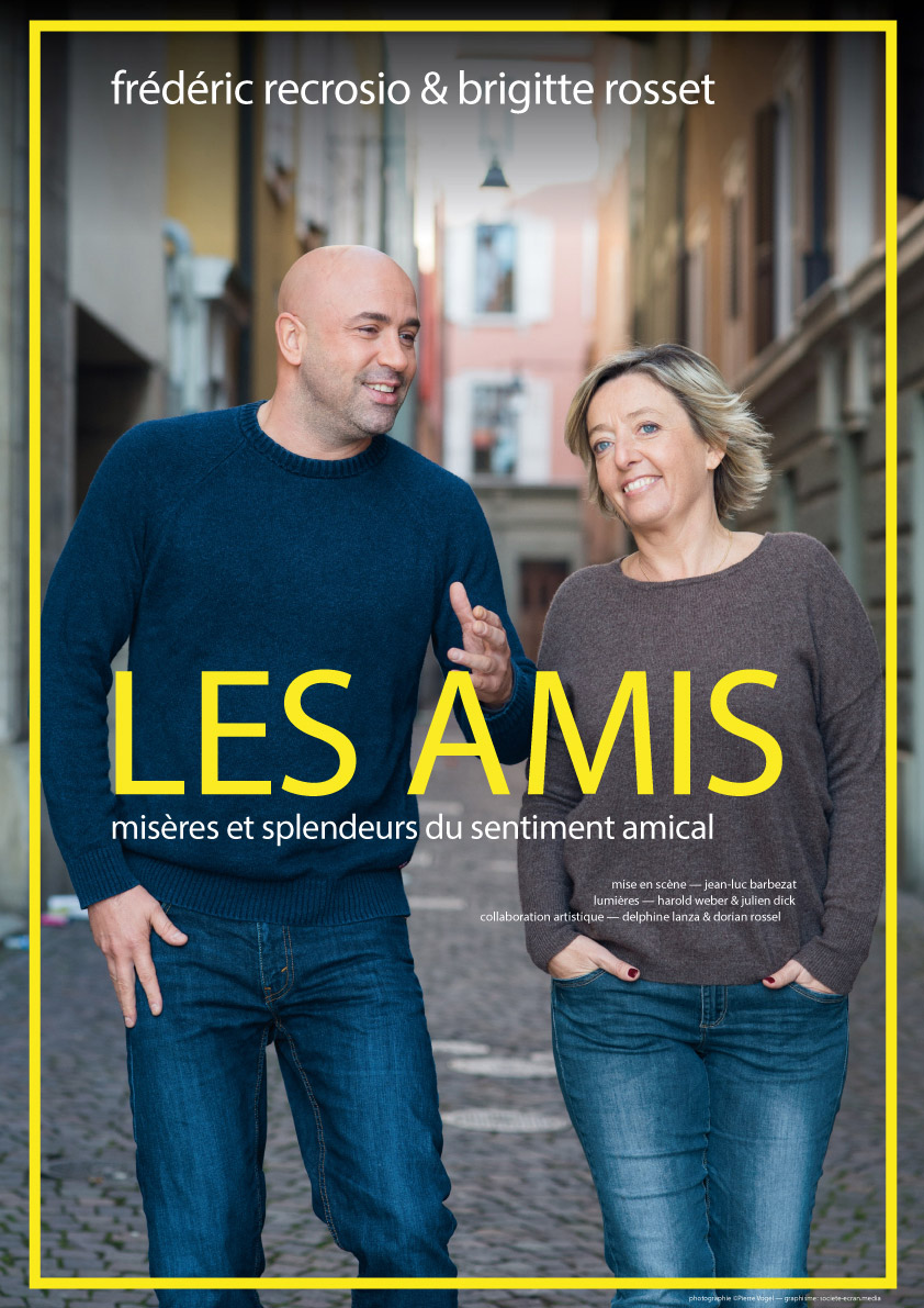 Dans un duo inédit mis en scène par Jean-Luc Barbezat, les comédiens Brigitte Rosset & Frédéric Recrosio, bons amis à la ville, dissertent sur l’amitié et égrènent avec finesse et légèreté les bons et les mauvais côtés de leurs meilleurs amis, qui pourraient également être les nôtres.